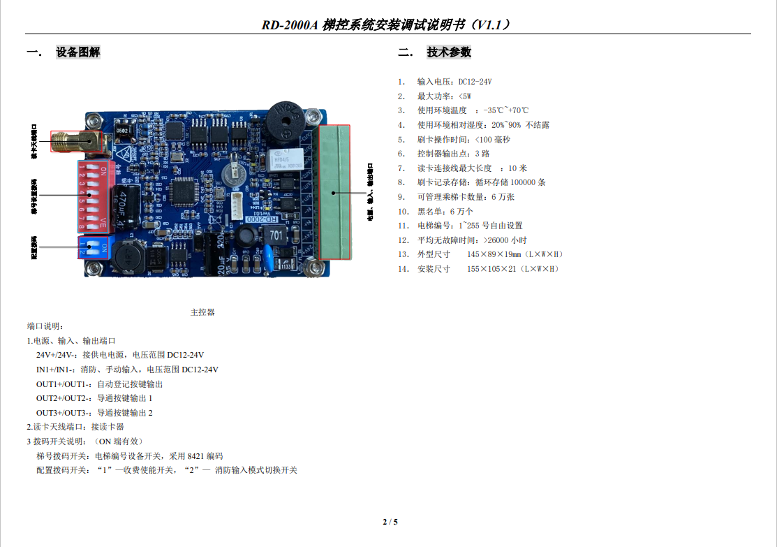 RD-2000A 梯控系統(tǒng)安裝調試說明書(V1.1)