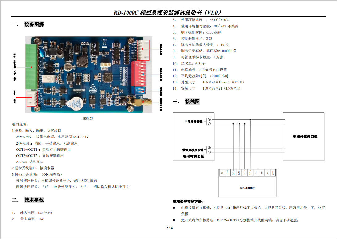 RD - 1 0 0 0 C 梯控系統(tǒng)安裝調試說明書